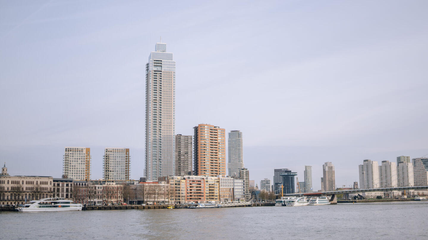 In Rotterdam, de wijk Kop van Zuid. Het hart van het haven en de industrie van Nederland.