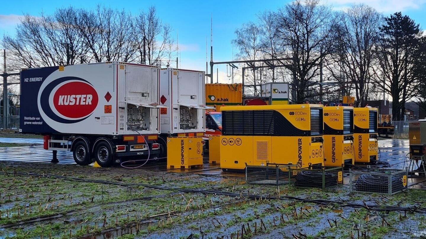 Genpower testte de opstelling op de eigen locatie, in het Zuid-Hollandse Groot-Ammers. Dat pakte goed uit, technisch gezien zou het wel werken. Maar goed, daarna moest de opstelling richting Bergen op Zoom. En dat in combinatie met een hoeveelheid van 600 kilo waterstof. Geen sinecure, vertelt Kwakkel. ‘Het ging hier om een grote hoeveelheid aan waterstof, verdeeld over meerdere containers. Hoe dat alles op locatie te krijgen?’