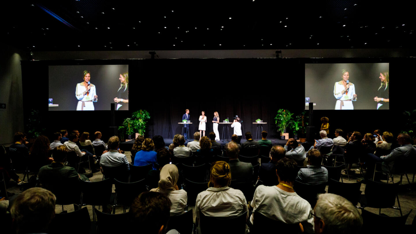 Alice Krekt, directeur van NLHydrogen, heeft een waterstofmedaille in ontvangst genomen uit handen van Marit Bouwmeester.